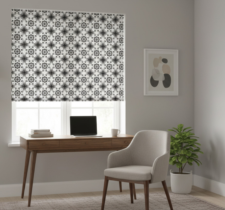 Reference: E7863Introducing our stunning Black roller blind vintage black tile design, a perfect blend of classic elegance and modern functionality! This unique design features intricate black tile patterns that add a touch of sophistication to any space. Crafted for easy assembly and disassembly in just two clicks, this roller blind is easy to clean and provides a stylish solution to regulating room temperature and ensuring privacy. With the ability to customize measurements and choose from three different textures, you can create the ideal ambiance while enhancing your room's decor!