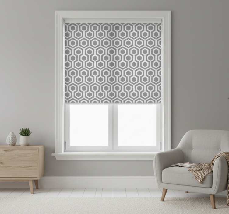 Reference: E8084Introducing our stunning Blind grey hexagonal grey pattern, a perfect blend of elegance and functionality! This design features a captivating hexagonal pattern in a soothing grey hue that adds a touch of modern sophistication to any space. With its easy assembly in just 2 clicks, effortless cleaning, and the ability to enhance your room's decor, this roller blind is a must-have for style enthusiasts!