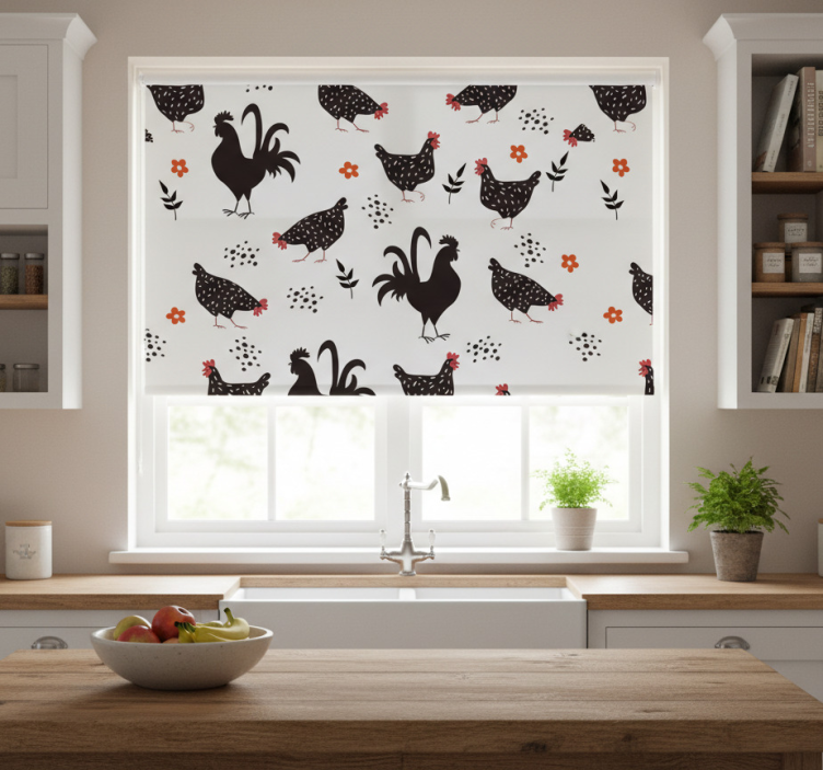 Blind kitchen black and white rooster