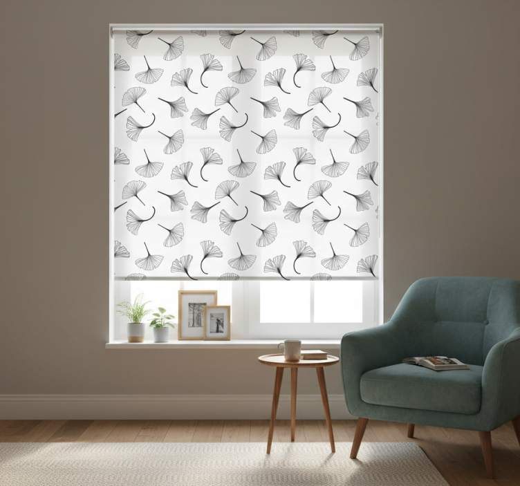 Reference: E8414Introducing our stunning Blind kitchen ginkgo leaves black pattern, a beautifully designed roller blind that enhances any kitchen space. Featuring elegant ginkgo leaves in a striking black pattern, this roller blind effortlessly combines art and functionality. The design not only adds a touch of sophistication but also serves practical purposes, including easy assembly and cleaning, privacy, and light regulation.