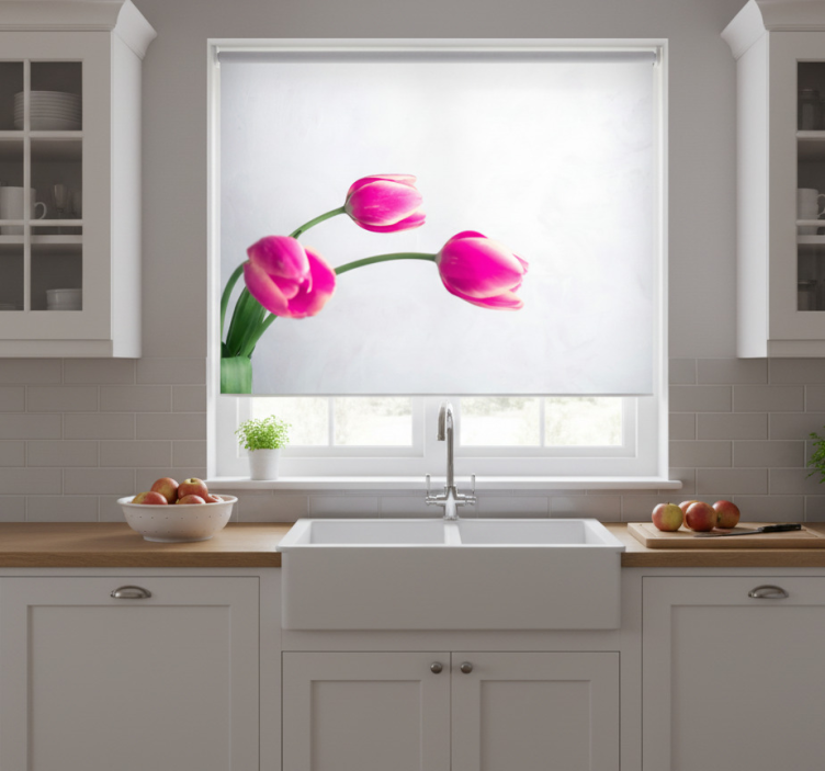 The Blind kitchen three white tulips on a white background blind kitchen is an exceptional choice for decoration because it effortlessly combines style and functionality. This roller blind transforms your kitchen into a tranquil haven, allowing you to enjoy the beauty of nature while ensuring your privacy. Its exquisite design complements various interior styles, making it a versatile option for any home. Elevate your space and create an inviting atmosphere with this beautiful blind!