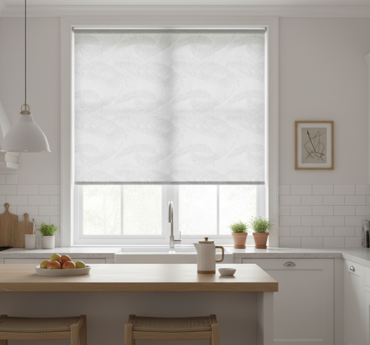 Reference: E8392Introducing our stunning Blind kitchen vintage gray tropical design! This exquisite roller blind features a captivating blend of vintage gray tones and tropical patterns, creating an inviting atmosphere for any kitchen space. Its unique design is not just visually appealing but also boasts functionality with easy assembly in just two clicks, straightforward cleaning options, and the ability to provide privacy and regulate room temperature. This beautifully crafted blind is customizable in various textures, allowing you to choose the perfect fit for your light and privacy needs!