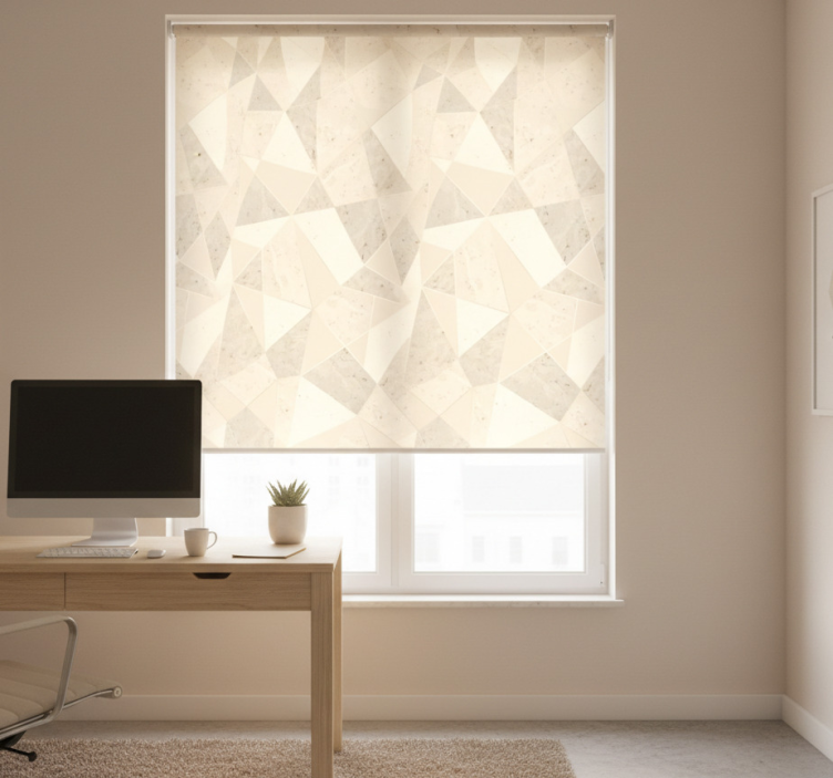 Reference: E7317Introducing our stunning Blind office 3d golden triangles design, a perfect blend of modern elegance and functionality! This unique design features intricate golden triangle patterns that effortlessly elevate any office space, creating a sophisticated ambiance. The roller blind is not only visually appealing but also practical, offering easy assembly in just two clicks, easy cleaning, and disassembly for quick maintenance. It effectively protects your room from direct sunlight while providing the privacy you need when lowered. Plus, it allows you to regulate your room's temperature and enhances your home's security by enabling you to see outside without being seen!