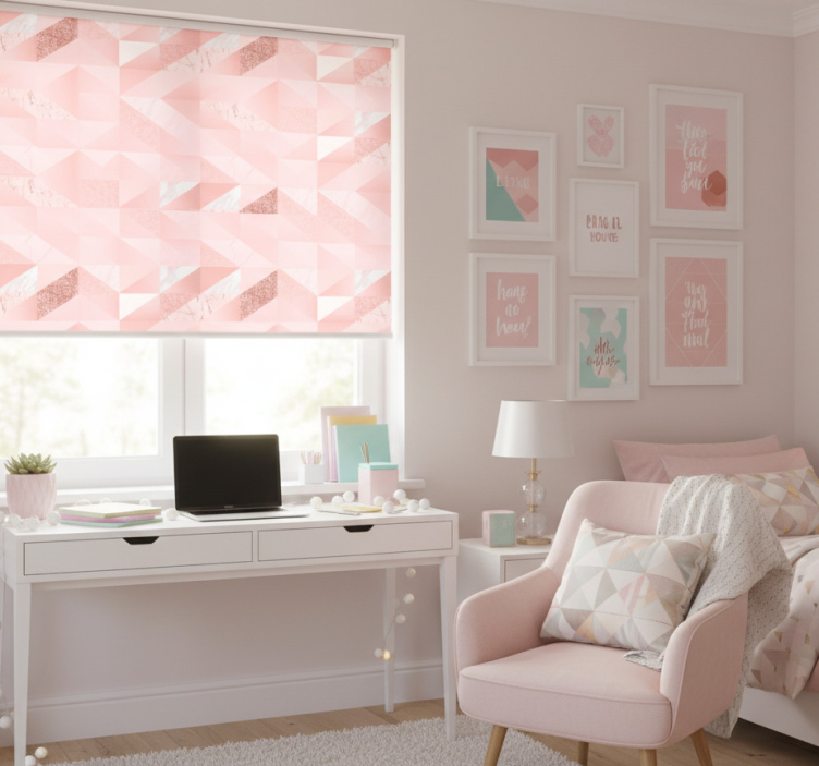 The Blind teens with girly pink geometric design blind teens is more than just a window covering; it’s a statement piece that can transform any space into a cheerful oasis! Its lively colors and unique patterns inspire creativity and joy, making it ideal for decorating bedrooms or play areas. This roller blind is designed to improve the ambiance of your home while providing essential privacy and light control, ensuring that every corner feels inviting and stylish!