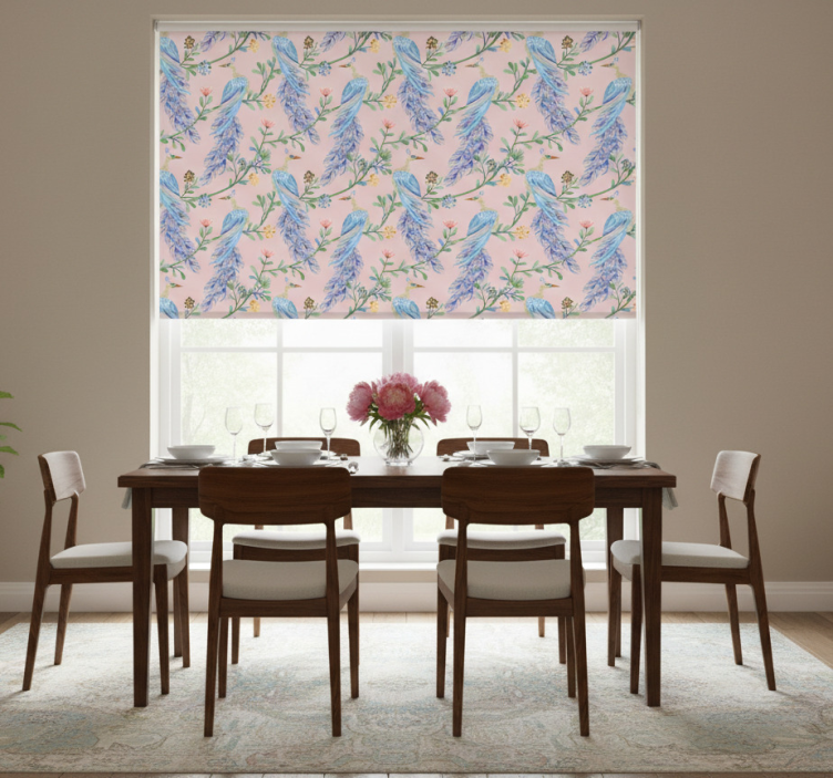 The Dining room blind birds in pink paradise dining room blind is a perfect way to elevate your decor! This stunning blind brings a touch of nature indoors, making your dining area feel vibrant and alive. Imagine hosting gatherings where friends and family are captivated by the beautiful design, enhancing the joy of every meal shared. It's more than just a blind; it's a statement piece that embodies elegance and creativity!