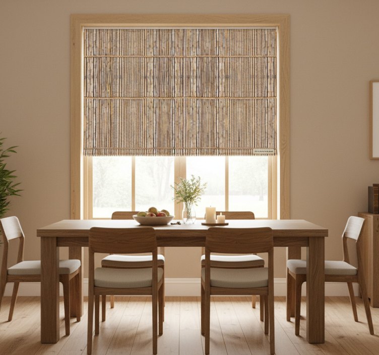 Reference: E6549Transform your living space with our Dining room blind handcrafted bamboo look canes, a stunning blend of elegance and functionality. This unique design features a natural bamboo appearance that effortlessly elevates the aesthetic of any dining room. The blinds are not only visually appealing but also offer practical benefits such as easy assembly and cleaning, privacy when lowered, and protection from direct sunlight, making them a must-have for modern homes!