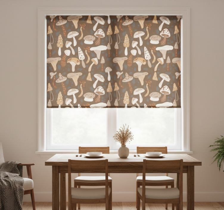 Incorporating the Dining room blind with forest mushrooms on brown dining room blind into your home enhances the aesthetic appeal of your dining space. Imagine enjoying meals surrounded by the beauty of nature, as the delightful mushroom design adds a unique charm. This blind is not just a functional item; it serves as a statement piece that sparks conversation and elevates your interior design!