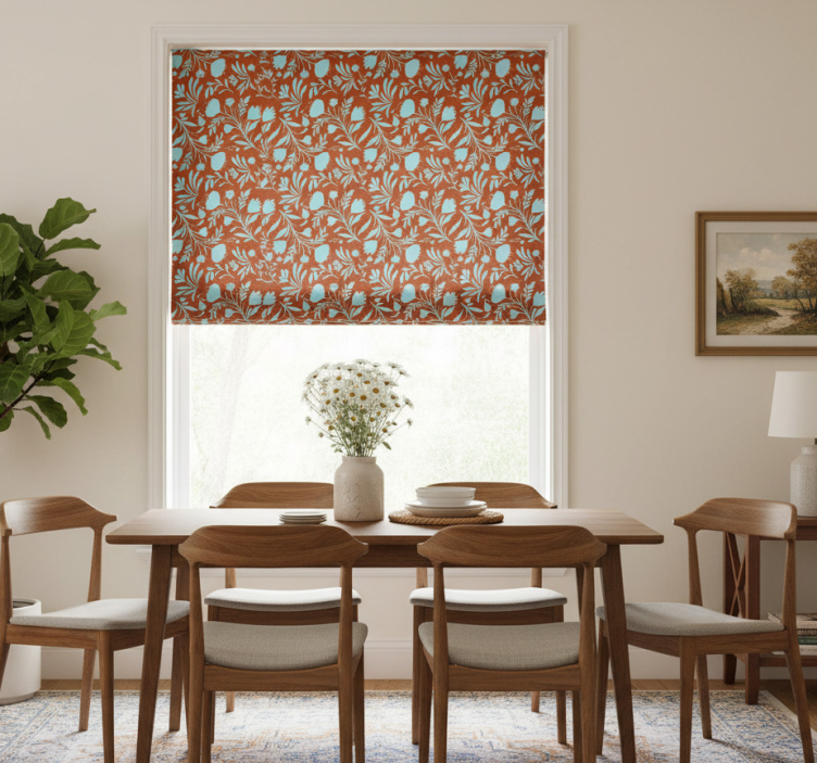 The Dining room blind with original blue flowers design dining room blind is an ideal choice for those looking to elevate their interior decoration. Its unique floral pattern brings a breath of fresh air into your home, creating a cheerful and inviting atmosphere. Imagine hosting family dinners or gatherings under the charm of these delightful blooms, adding a touch of nature indoors while ensuring your space remains stylish and sophisticated. Experience how this beautiful design can transform your dining room into a haven of comfort and elegance!