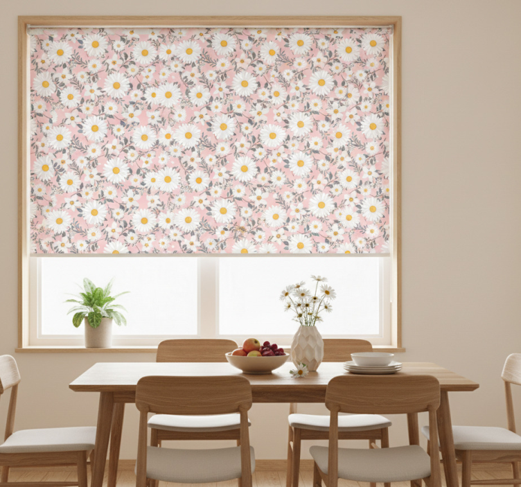The Dining room blind with pink background daisy flowers dining room blind is an exceptional choice for those looking to elevate their interior decor. Its vibrant design acts as a stunning focal point, drawing attention and sparking joy. By incorporating this roller blind, you can effortlessly brighten your dining area, creating a warm and welcoming environment for family gatherings and entertaining friends. Let your windows tell a story of elegance and creativity!