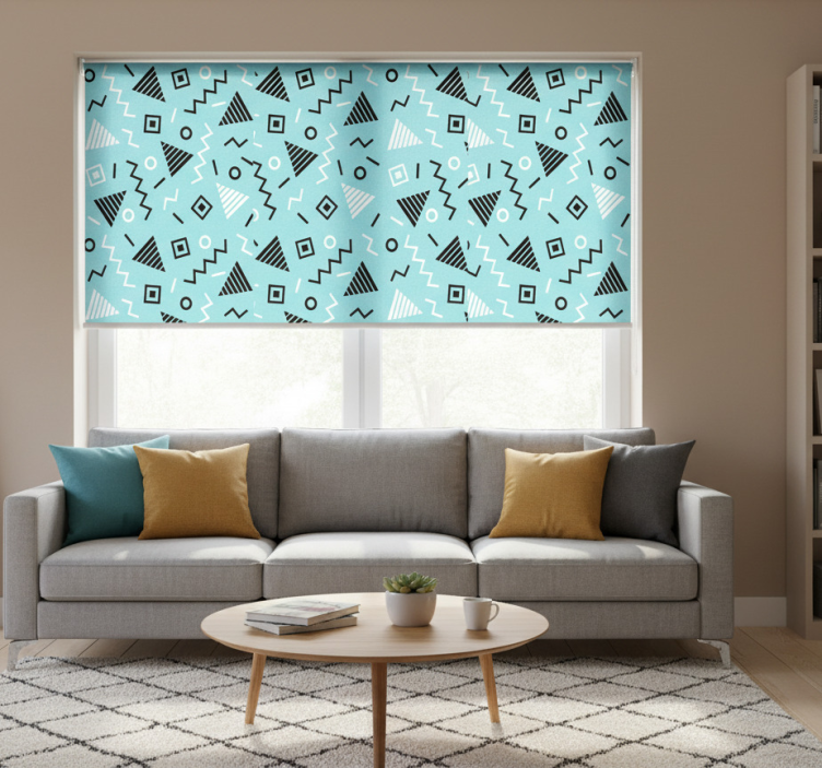 Reference: E8566Introducing our Living room blind with 80s memphis style pattern, a vibrant masterpiece that brings the iconic flair of the 80s Memphis design to your home! This eye-catching roller blind features a kaleidoscope of geometric shapes and bold colors, combining playful aesthetics with functionality. Designed for easy assembly and disassembly in just two clicks, it’s a breeze to clean, allowing you to maintain a fresh and stylish look effortlessly. This product not only protects your space from direct sunlight but also enhances your room's ambiance while providing privacy and security.