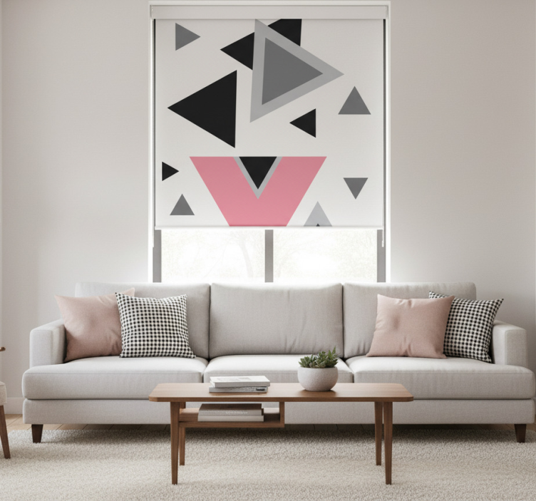 The Living room blind with triangles abstract art living room blind is not just a window treatment; it’s a statement piece! It transforms your space by adding an artistic touch that inspires creativity and comfort. Imagine your living room adorned with this unique design, elevating your decor while providing the perfect balance of light and privacy. This roller blind allows you to express your style while enhancing the overall ambiance of your home!