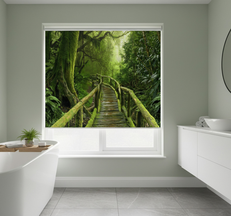The Lush mossy boardwalk tree blind is not just a window covering; it’s a statement piece that transforms your living space into a tranquil haven. Imagine waking up to the calming visuals of nature every morning! This roller blind enhances the ambiance of your home while offering privacy and light control, making it perfect for any room. Elevate your interior design effortlessly with this captivating and functional addition!