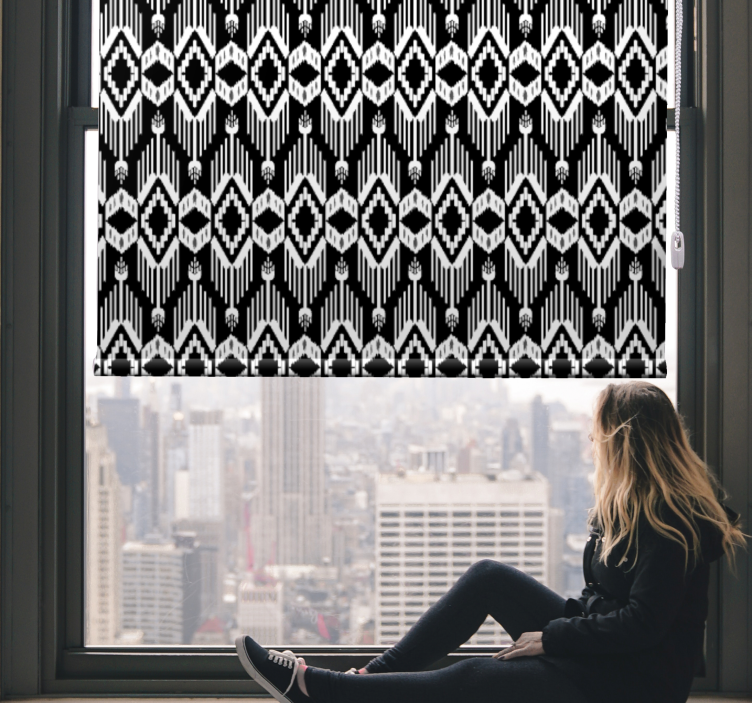 Introducing our stunning Pattern roller blind geometric black design, a perfect blend of ethnic and rustic charm! This beautiful roller blind features an intricate geometric pattern in striking black and white shapes, making it an eye-catching addition to any room. Its unique design not only enhances your decor but also adds a touch of sophistication and style!