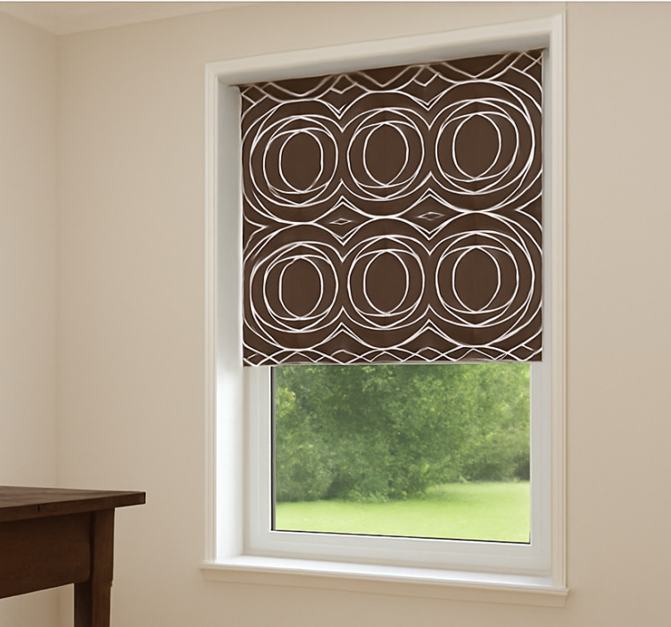 Reference: E6086Introducing our stunning Scandinavian blind modern intertwining circles, a masterful blend of elegance and functionality! This design features a captivating pattern of intertwining circles that adds a contemporary touch to any room. The roller blind not only enhances your decor but also offers exceptional practicality, with easy assembly and disassembly in just two clicks, allowing for quick cleaning of the window and its surroundings. Enjoy the benefits of privacy when lowered, protection from direct sunlight, and the ability to regulate room temperature all while keeping your home secure and stylish!