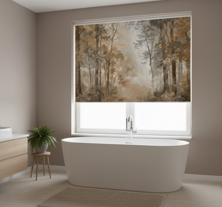 Reference: E6135Introducing the stunning Tree blind in amber autumn grove! This exquisite product showcases a beautiful design that captures the essence of autumn with warm amber tones, intricate leaf patterns, and a soothing natural aesthetic. Its captivating visuals not only enhance your space but also bring a touch of nature indoors, creating a serene atmosphere. Experience effortless elegance with this roller blind that is easy to clean, features a simple two-click assembly, and provides privacy when lowered!