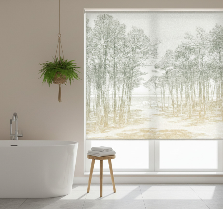 Reference: E6133Introducing the Tree blind vintage forest shore, a captivating blend of nature-inspired design that brings the beauty of the outdoors into your home. The graphic design features intricate tree motifs and soft forest hues that evoke a sense of tranquility while perfectly complementing any interior decor. With its easy assembly in 2 clicks, quick cleaning capabilities, and customizable measurements, this roller blind is not only stylish but also practical!