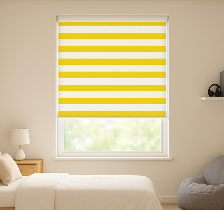 The Yellow and white stripes blind teens is an inspiring choice for decorating your home! Its cheerful stripes bring a playful touch while also being incredibly functional. Imagine a bright and inviting space that radiates positivity, all while regulating room temperature and ensuring privacy. This roller blind is perfect for creating a vibrant atmosphere that encourages creativity and relaxation!