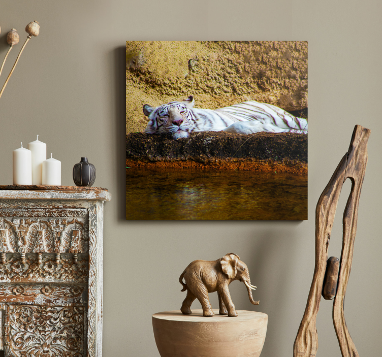 Immerse yourself in the beauty of nature with our stunning Animal canvas wall art sleeping white tiger. This captivating piece features a serene, sleeping white tiger, showcasing the wild elegance of this magnificent animal. The design encapsulates the essence of wildlife and nature photography, offering a glimpse into the tranquil world of wild animals. With its vibrant colors and intricate details, this canvas art transforms any space into a sanctuary of peace and beauty!