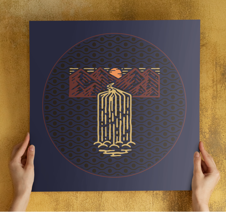 Experience the beauty of nature with our stunning landscape canvas serene waterfall scenery. This captivating design features a mesmerizing waterfall cascading down majestic mountains, bathed in the warm glow of a sunset. The artwork is adorned with geometric patterns that evoke a sense of minimalism, while the rich purple hues add depth and tranquility. This abstract drawing captures the essence of African landscapes, presenting a round view of serene beauty that invites you to immerse yourself in the wonders of nature.