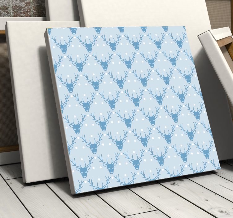 Introducing our stunning Stag canvas winter stag design, a captivating illustration featuring majestic deer and reindeer heads amidst a beautiful Christmas pattern. This enchanting piece showcases shades of blue set against a snowy backdrop, evoking the magic of the winter season. Perfect for adding a touch of festive cheer to any space, this artwork is sure to bring joy and warmth to your home!