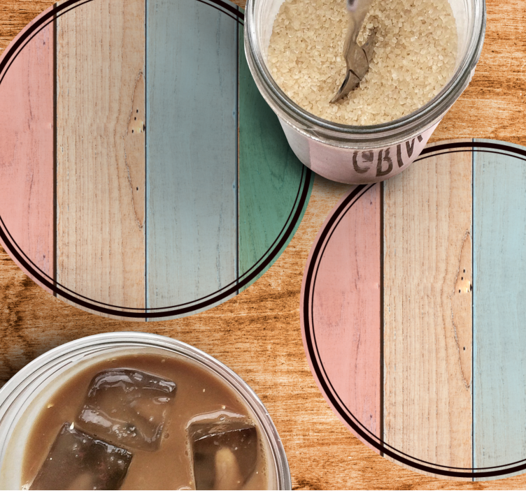 Introducing our Colorful wooden planks coasters, designed to bring a vibrant touch to your home décor! With a stunning wood-effect and a delightful pattern that showcases rich texture, these plank-style coasters are perfect for adding a splash of color to any surface. The pastel hues combined with a round and circular form create an inviting aesthetic that complements both modern and traditional settings. Crafted from high-quality wood, these wooden coasters are not just beautiful but also practical!