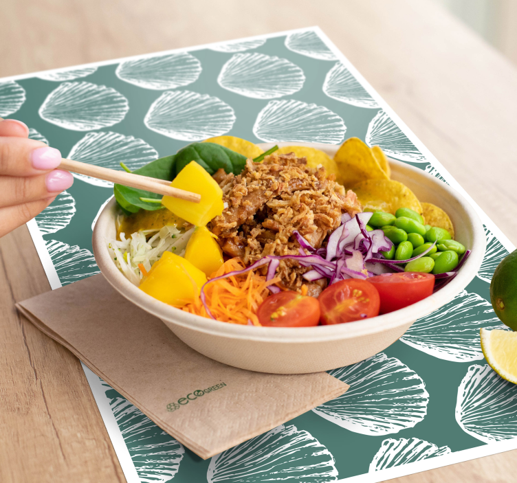 Introducing our stunning Textured placemats shell pattern design, a beautiful blend of sea-inspired artistry and organic shapes! The intricate drawing features delightful shells and an enchanting green hue that brings the essence of the ocean right to your dining table. Perfect for those who love to incorporate nature into their decor, these placemats are sure to spark joy and conversation!