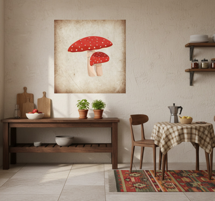 Reference: G610Introducing our stunning Kitchen poster amanita mushroom illustration, a captivating piece that beautifully blends artistry and nature! This poster features a vibrant design with high colour intensity, crafted on premium 180g/m2 grammage paper. Its semi-matt finish ensures that there are no reflections, allowing the intricate details of the amanita mushroom to shine through. Perfectly suited for any kitchen, this illustration will add a touch of whimsy and elegance to your space!