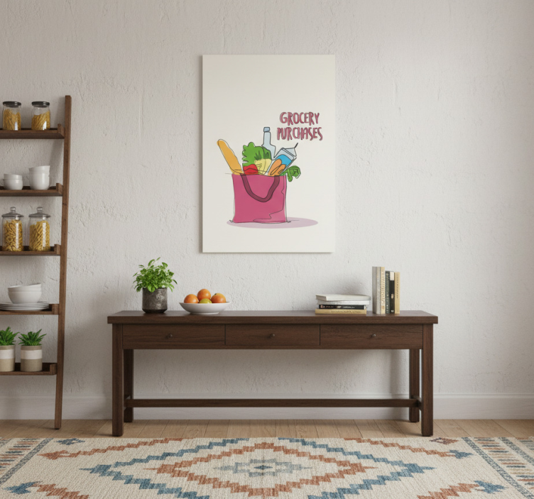 Reference: G650Introducing our stunning Kitchen poster grocery illustration, designed to elevate your culinary space! This beautiful piece features a vibrant and playful design that showcases various grocery items in a delightful arrangement. The 180g/m2 grammage ensures durability, while the semi-matt finish without reflections provides a sleek look. The high colour intensity brings your walls to life, making it a perfect addition to any kitchen décor!