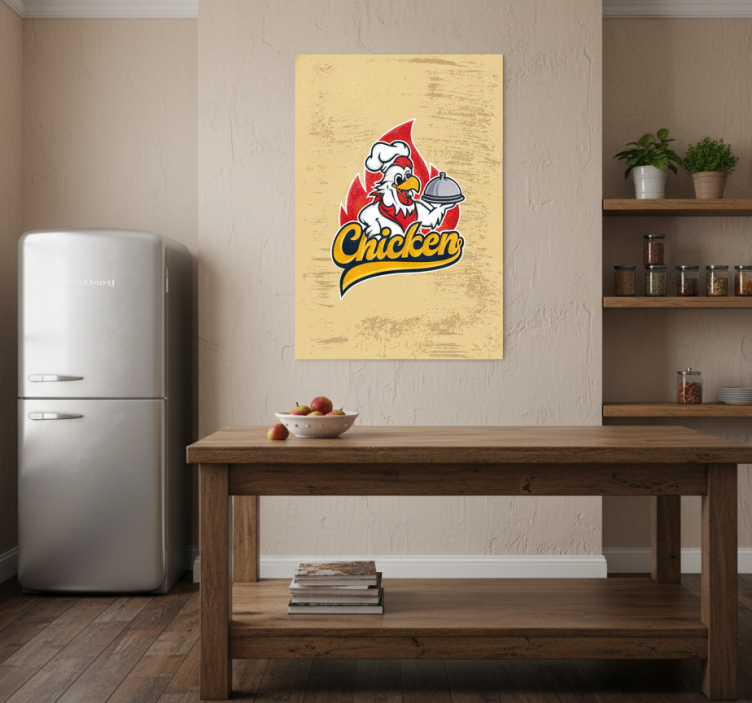 Reference: G643Introducing our stunning Kitchen poster vintage chicken chef art print, designed to bring a delightful charm to your culinary space! This vibrant artwork features a whimsical chicken chef in a playful pose, showcasing a semi-matt finish that enhances its vivid colors without any reflections. Crafted on premium 180g/m2 paper, it boasts high color intensity that will surely catch the eye of anyone who enters your kitchen.