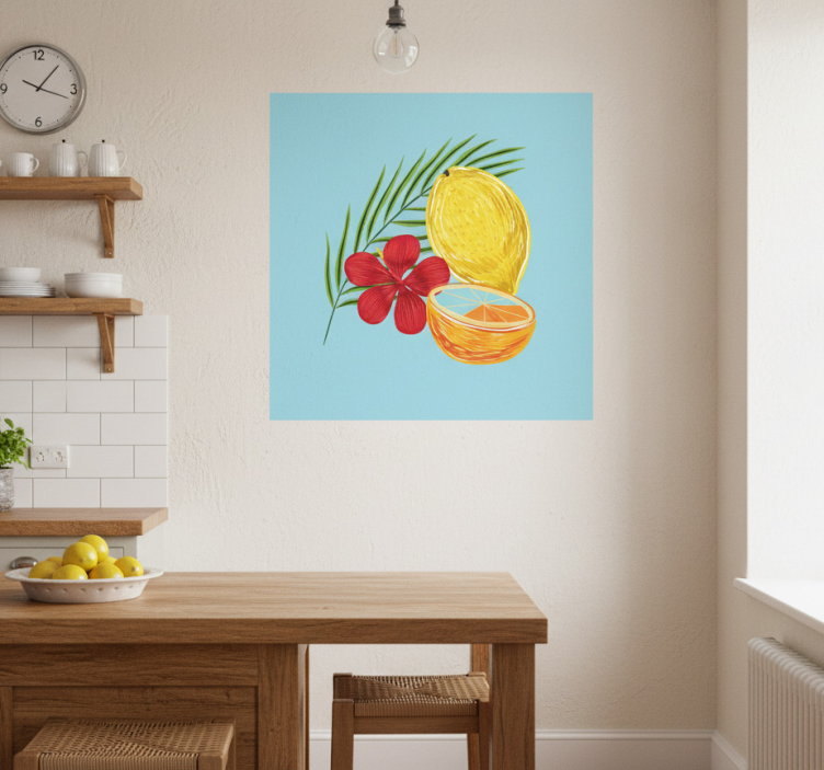 Reference: G597Bring a touch of elegance to your space with our Kitchen poster with pastel lemon fruit design. This delightful design features vibrant pastel lemons, paired with lush greenery and soft hues that create a refreshing ambiance. The semi-matt finish ensures a glare-free view, while the high colour intensity brings the artwork to life, making it a perfect fit for any kitchen or dining area.