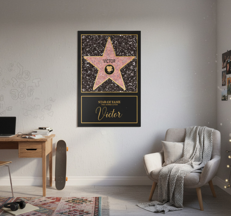 Reference: G759Transform your space with our Living room poster custom star of fame. This stunning design features vibrant colors and a semi-matt finish, ensuring high color intensity without reflections. Crafted from premium 180g/m2 grammage, this poster perfectly blends quality and aesthetics, making it an ideal choice for any living area.