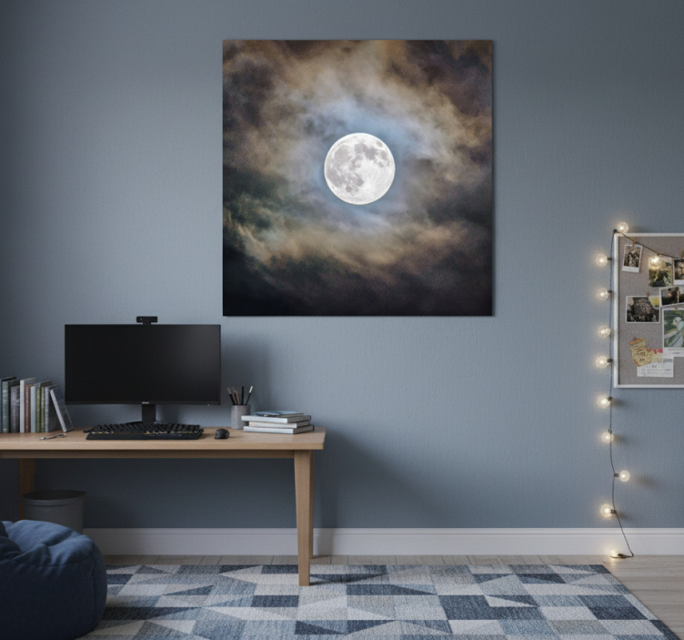 Reference: G785Transform your living space with our stunning Living room poster full moon night. This eye-catching design features a captivating full moon illuminating a serene night sky, beautifully contrasting against vibrant hues that evoke a sense of calm and wonder. Crafted with 180g/m2 grammage for an ideal poster experience, this piece boasts a semi-matt finish without reflections, ensuring high color intensity and clarity that enhances any room's atmosphere.