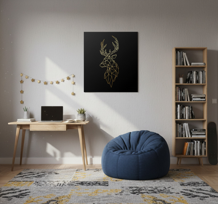 The Living room poster golden origami deer living room poster is more than just a decoration; it's a statement piece that inspires tranquility and sophistication. Imagine this captivating artwork gracing your walls, inviting admiration and sparking conversation among your guests. Its elegant design and golden hues effortlessly enhance any living room, making your space feel warm and inviting!