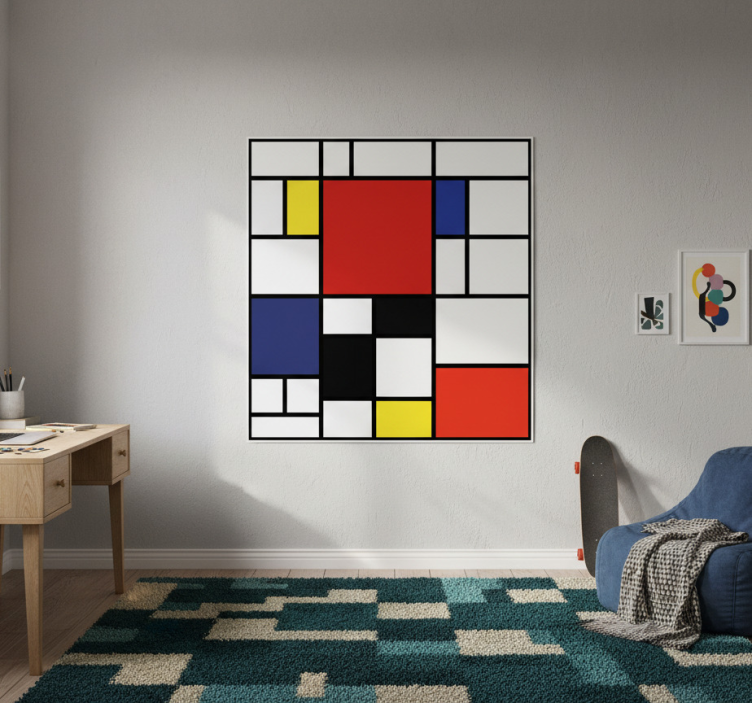 Transform your home into a haven of creativity with the Living room poster in abstract color blocks living room poster. This piece inspires positivity and joy, allowing you to express your unique style. It's an effortless way to enhance your decor, bringing a fresh and lively ambiance that resonates with warmth and charm. Let this poster be the focal point of your living room, sparking conversations and admiration from guests!