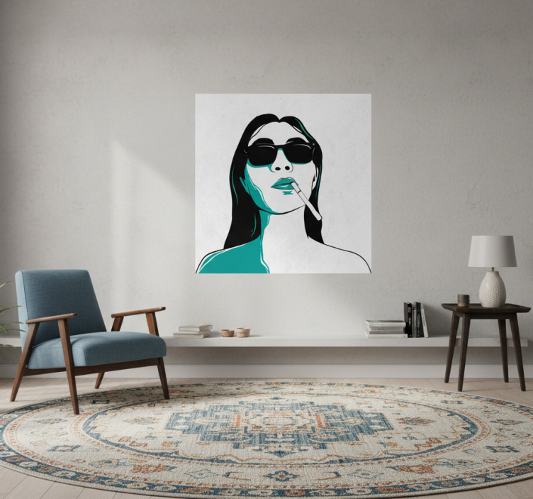 Living room poster of a woman face smoking
