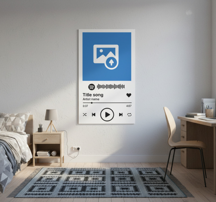Reference: G760This Living room poster spotify canvas white background features a stunning design that captivates with its high colour intensity and a semi-matt finish without reflections. Crafted on 180g/m2 grammage paper, it provides a perfect backdrop for any modern living space. The clean white background enhances the vibrancy of the Spotify-inspired art, making it a striking centerpiece for your decor!