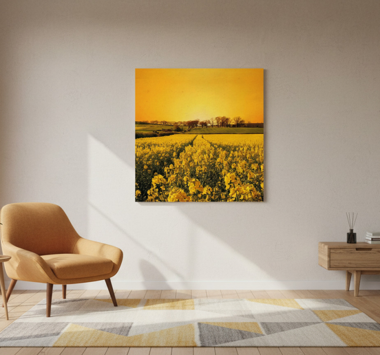 Reference: G799Introducing our stunning Living room poster yellow flower field art, a captivating piece that brings the beauty of nature right into your home! This exquisite design features a vibrant field of yellow flowers, set against a picturesque backdrop that radiates warmth and positivity. Printed on high-quality 180g/m2 paper, the semi-matt finish eliminates reflections while enhancing the high color intensity, making it a standout addition to any living space.