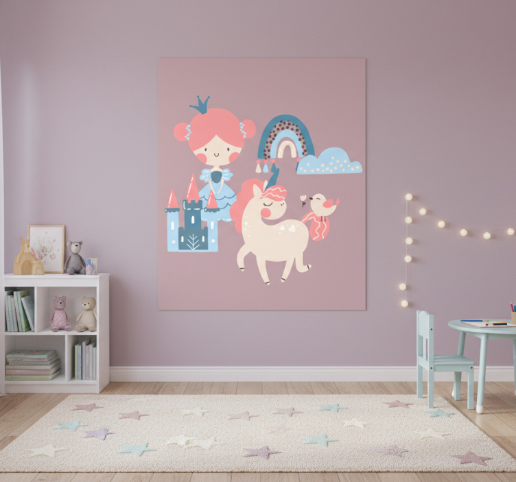 The Nursery poster of pastel unicorns and princesses nursery poster is not just a decoration; it’s an invitation to dream! Transform your child's room into a fairy tale haven filled with imagination and joy. This poster serves as a captivating focal point, inspiring creativity and wonder every day. Let your child's dreams take flight with these enchanting characters gracing the walls of their space!