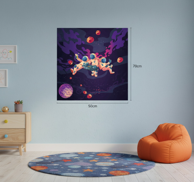 Reference: G926Transform your child's room into a celestial wonderland with our Nursery poster of playful cartoon astronauts. The design features vibrant and whimsical illustrations of adorable astronauts exploring the cosmic expanse, surrounded by colorful planets and twinkling stars. With a 180g/m2 grammage and a semi-matt finish that eliminates reflections, this poster is crafted for high color intensity, making it an eye-catching addition to any nursery!