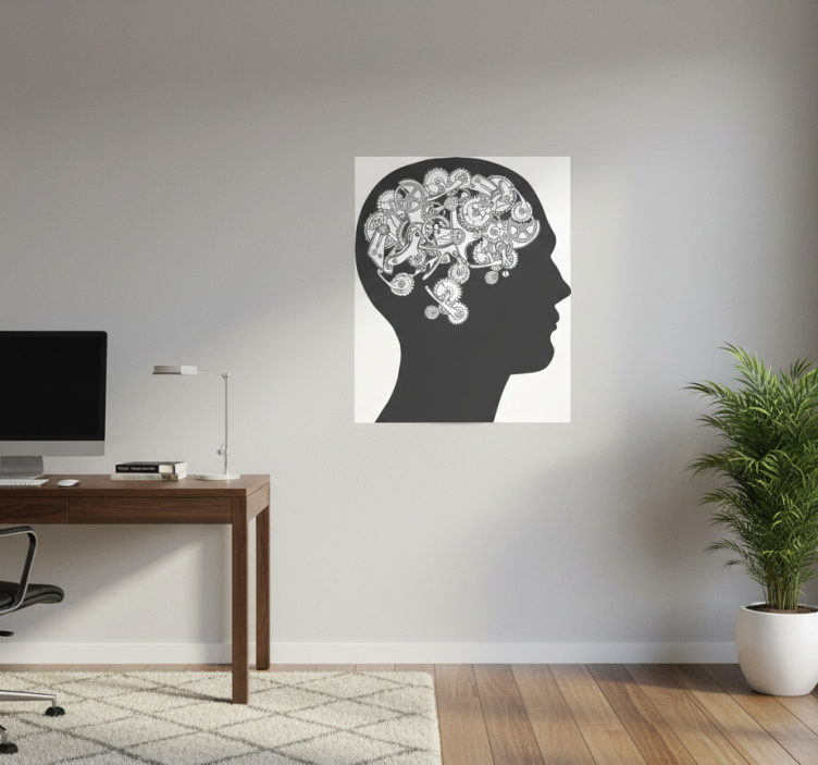 Reference: G704Introducing our stunning Office poster brain with gears, a captivating piece of art that merges creativity with intellect! This unique design features intricate gears and a vibrant brain illustration, creating a dynamic visual that inspires innovation and productivity. The high colour intensity and semi-matt finish without reflections enhance the overall aesthetic, making it the perfect addition to any workspace.