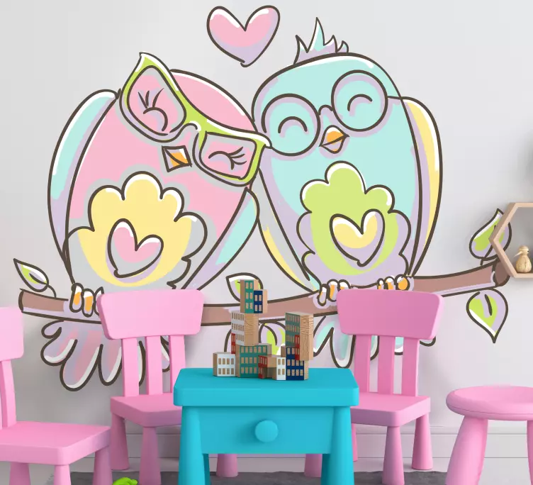 Transform your space with our Bird wall sticker adorable love birds! This delightful design features a charming couple of owls in soft pink and blue, exuding happiness and cuteness. With an enchanting illustration of birds that captures the essence of love, this wall sticker is perfect for bringing joy and warmth to any room!
