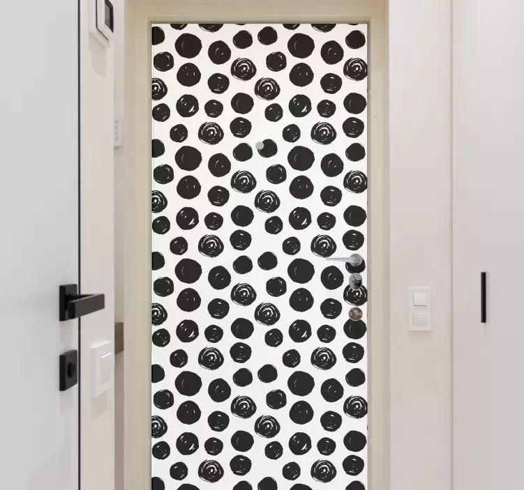 Transform your space with our Bold circular pattern door sticker, featuring a striking design that combines circles and polka dots in a mesmerizing black and white geometric pattern. This minimalist and abstract adhesive adds a touch of modern elegance to any door, making it stand out with its irregular charm. Perfect for those who appreciate unique graphic design!