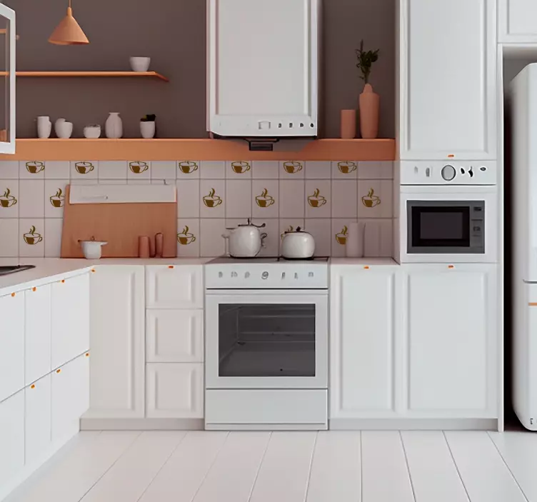 Our Cafeteras drink wall sticker is the perfect way to add a touch of elegance to any room. The sophisticated design of the coffee cup icon makes it ideal for coffee shops, kitchens, or any other space where you want to create a cozy atmosphere. With its matte finish, this sticker is easy to clean and maintain, and its built-in adhesive ensures it stays in place for years to come. It's a great way to add a personal touch to your space and make it feel more inviting.How to apply this product?