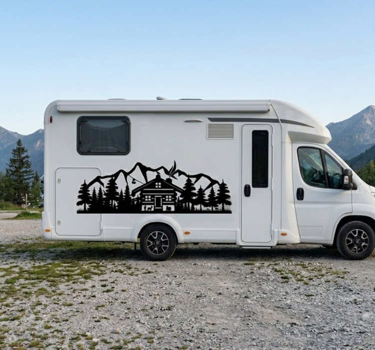 Car sticker mountain cabin silhouette
