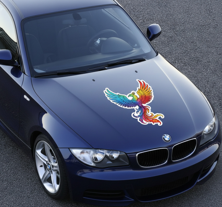 Reference: A54707Experience the beauty of transformation with our Car sticker of a vibrant multicolour rising phoenix. This stunning design features a majestic phoenix rising with flames of red, orange, and yellow, intertwined with shades of blue and green, symbolizing rebirth and hope. The intricate details and vibrant colors create an eye-catching aesthetic that will surely make a statement on any vehicle!