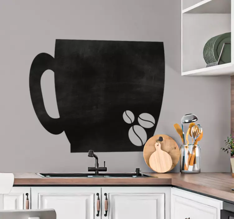 Transform your kitchen into a coffee lover's paradise with our Chalkboard sticker coffee mug outline. This delightful design features a charming coffee cup, rich coffee beans, and an inviting menu text that will make your space feel warm and welcoming. Perfect for any coffee enthusiast, this sticker adds a touch of creativity to your walls and brings a cozy café vibe to your home.