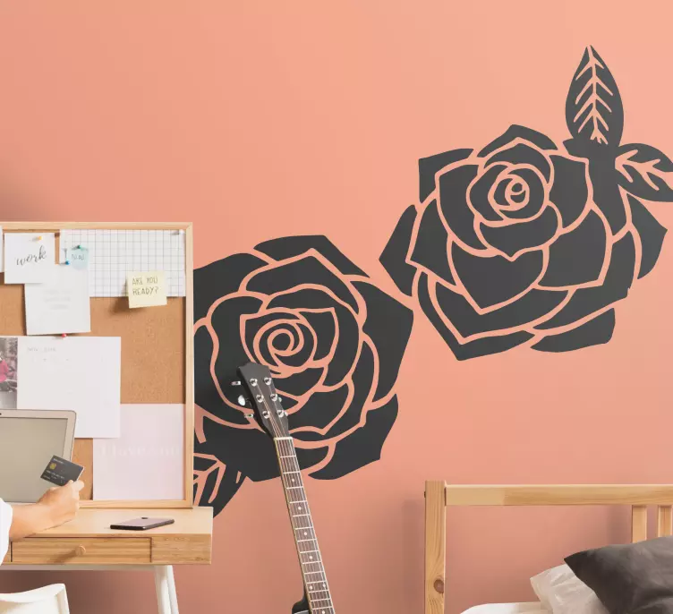 The Chic rose bouquet wall sticker is a stunning piece of art that beautifully captures the essence of nature with its elegant floral design. Featuring a graceful silhouette of roses and leaves, this wall sticker adds a touch of sophistication and warmth to any space. The black color contrasts beautifully with the vibrant hues of the flowers, making it a striking focal point in your home or office.