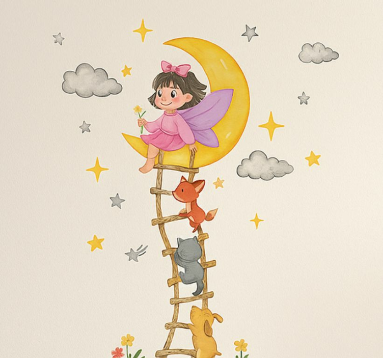 Placing our Childrens' wall stickers moon girl wall decal is a breeze! Simply ensure the surface is clean and flat before applying the childrens' wall stickers. For a seamless look, you might consider using heavy-duty adhesive Velcro or even a spatula for a smooth finish. This easy installation process makes it simple to refresh your child's room anytime!