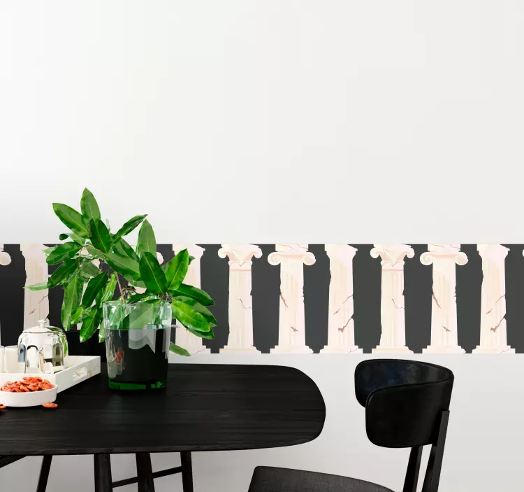 Transform your living space with our Classic column design wall border sticker, a stunning blend of antique elegance and modern flair. Featuring a graphical design that showcases magnificent Greek columns set against a rich black background, this wall border sticker evokes the timeless beauty of marble architecture. Ideal for creating an interior ambiance that is both traditional and sophisticated, it adds a touch of elegance to any room.