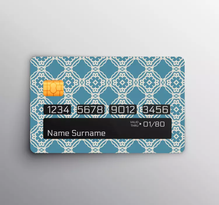 Transform your credit card into a work of art with our Credit card sticker with stylish patterns. This stunning sticker features an antique design inspired by ornate tiles and geometric patterns in soothing blue tones. The intricate texture captures the essence of finance while allowing for personalization that reflects your unique style!